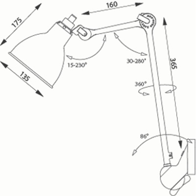 The Lampe Gras 222 wall light. Bernard-Albin Gras designed a series of lamps in 1921 for use in offices and industrial environments. The Gras lamp as it was soon to be known was astounding in its simple design, there are neither screws nor welded joints in its basic form. Le Corbusier was seduced by the modern design and the user friendliness of the lamps, he became one of Bernard Albin Gras‘s most enthusiastic supporters. The No.222 is a compact wall/ceiling fixed version of the No.205. The reduced footprint bracket is especially shaped to fix the luminaire with security.