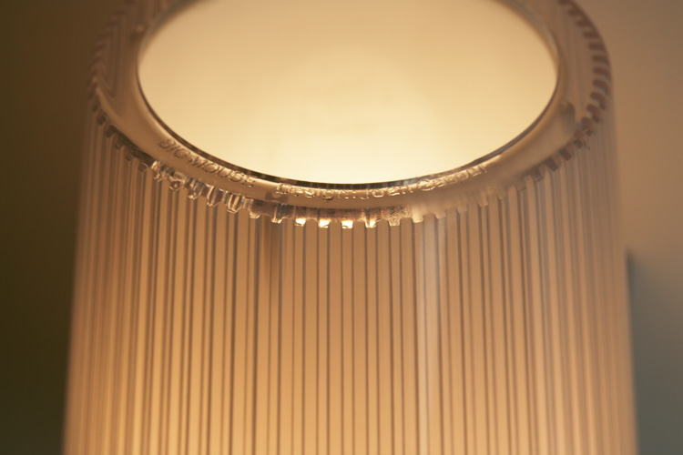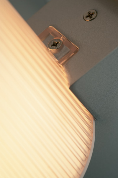 The Marset Big Mouse wall light, designed by Joan Gaspar, is available with either a single shade (A.06) or a double shade (2.06). The structure is in aluminium. The shades are in ploycarbonate double screens. The inner screen in trsnslucent and the outer screen is engraved transparent.