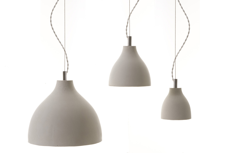 The slip cast concrete shades come in 2 grey finishes as well as white and terracotta, which is new for 2013. Because the concrete take several days to dry the process gives rise to random air pockets becoming exposed on the inner surface as well as vein type patterns. These give each shade its own signature effect, which contrasts with the smooth exterior of the shade.