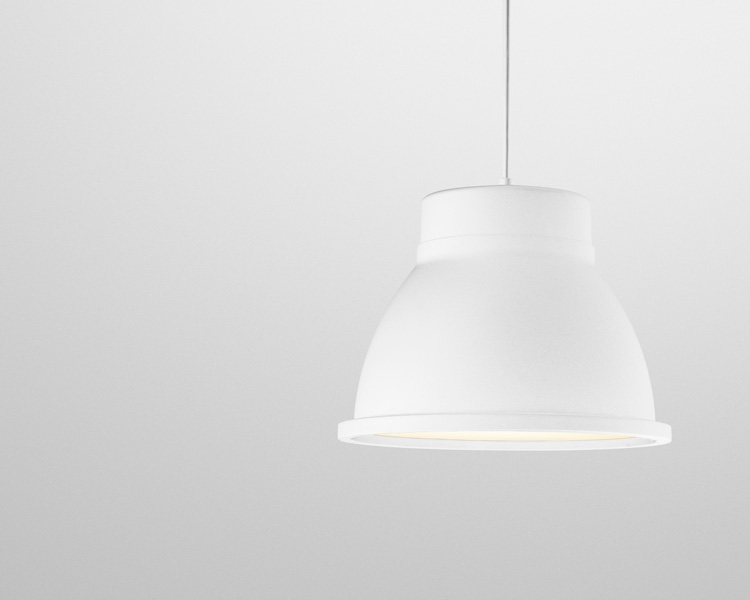 The Studio pendant light has an industrial look and feel. Made from solid aluminium and available in a range of colours, it stands out in larger spaces.