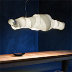 A light shade or illuminating structure suspended by means of cables or thin rods from the ceiling. These fittings require installation. |
